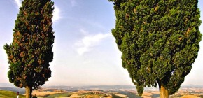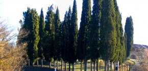 Small pitch between two large cypress trees at the edge of Ancient Loreto, in the stretch ...