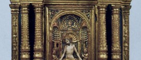 Tabernacolo con bassorilievi interamente ricoperto in oro![]()