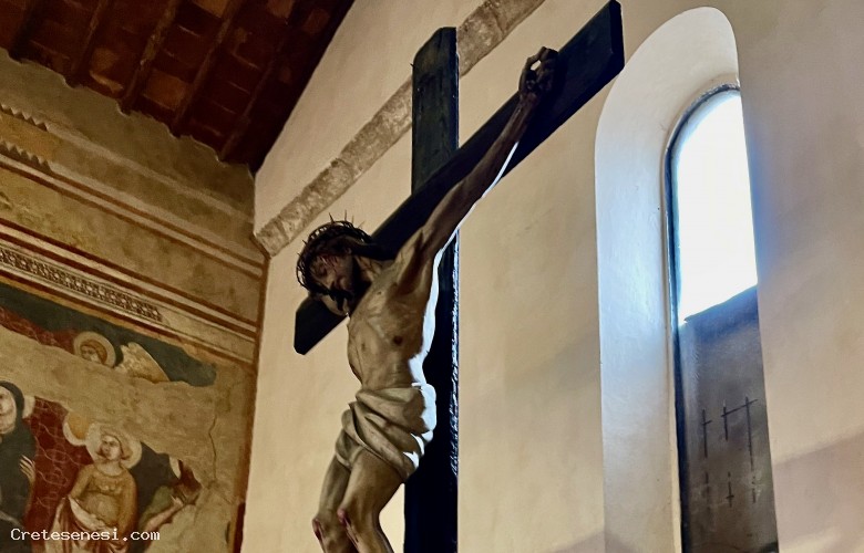 The church is located near the entrance to the fortified Grancia of Cuna, a historic property from the hospital of Santa Maria della Scala in Siena.