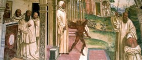 13 - Come Benedetto libera uno monaco indemoniato percuotendolo Asciano