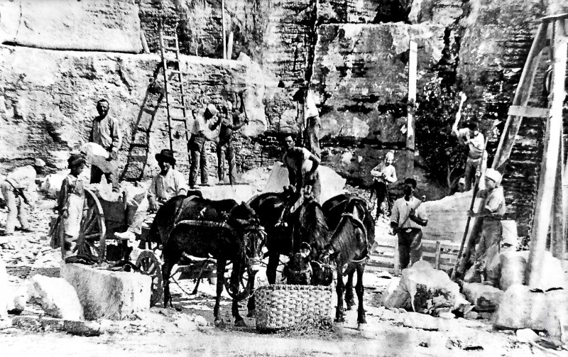 il primo riguarda l'uso del carro a quattro ruote che veniva usato per il trasporto dei blocchi, prima dell'adozione di carrelli su binari e aveva una capacità di trasporto oltre la tonnrllata di peso.