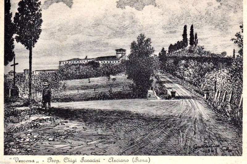 1917 - Cartolina con panoramica di Vescona disegnata Asciano