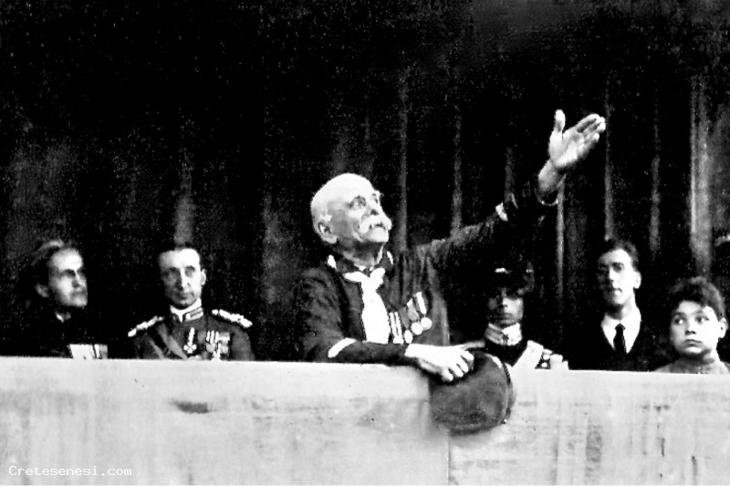 Il Garibaldino Carlo Baronti durante un intervento pubblico in occasione dell'inaugurazione del locale Monumento ai Caduti.