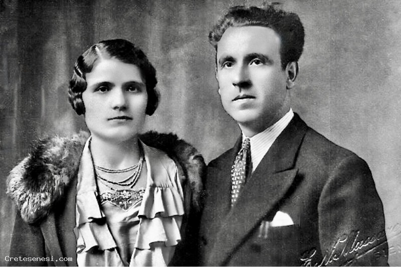 Rina Sprugnoli, sorella di Gigi barbiere con negozio accanto all'Emporio del cognato davanti alla scalinata della Collegiata di Sant'Agata. Rina è nata a Asciano il 13 Luglio del 1899 e morta il 27 Dicembre 1974. Il matrimonio ci risulta si sia svolto ad Asciano il 20 Aprile1925