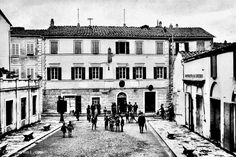 ll Municipio, con la grande insegna Fascista al centro, aveva l’Ufficio Postale a destra e l'ufficio del Telegrafo a sinistra.