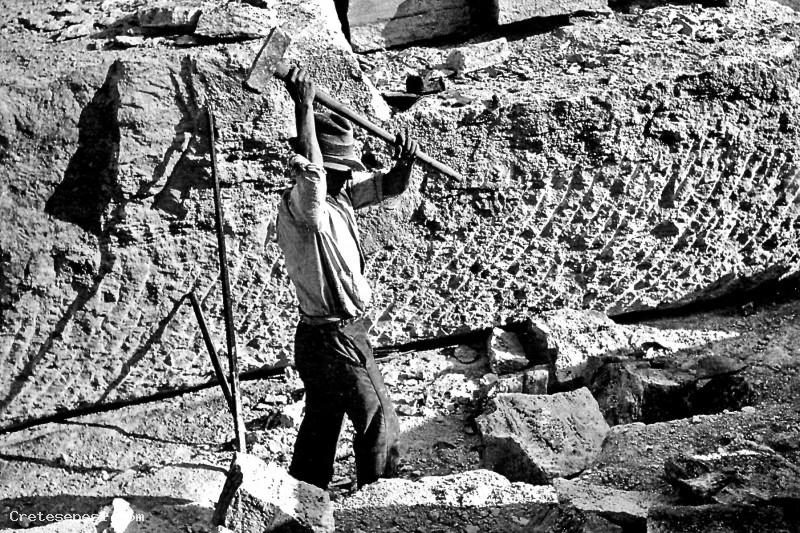 1939 - Spaccatura dei blocchi meno pregiati dentro la cava Rapolano Terme