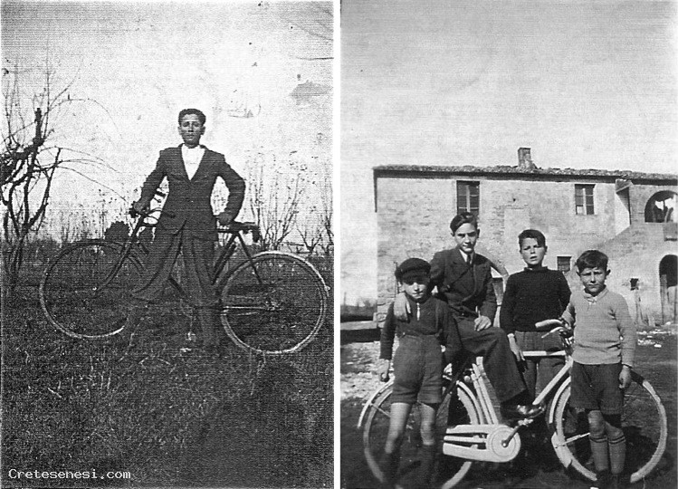 Avere una bici, allora era un grande privilegio, molto più che avere oggi un grosso scooter. Queste due foto accomunate dalla provenienza, ritraggono:
