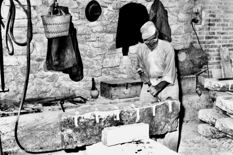1951 - Scarpellino al lavoro intorno a un grosso blocco Rapolano Terme