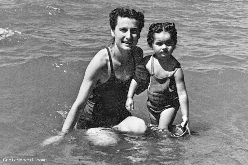 Una piccolissima Paola Giulianini al mare con la mamma, Siria Boscagli.