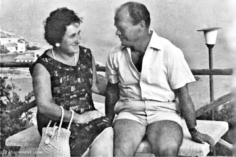 Silvia Lucatti e Silvano Trapassi a Castiglione della Pescaia seduti su una panchina.