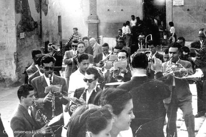 1955 - Gruppetto di musicanti sulle scale della chiesa Asciano