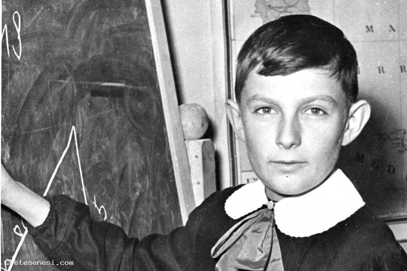 Ilio Cresti in quinta elementare mentre cerca di risolvere un problema alla lavagna.