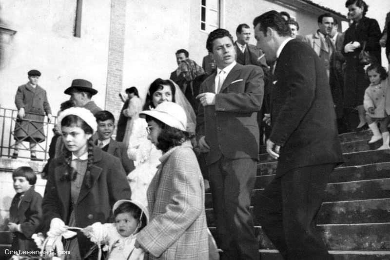 1957, Domenica 29 Dicembre - Ilio e Marusca scendono dalla Collegiata Asciano