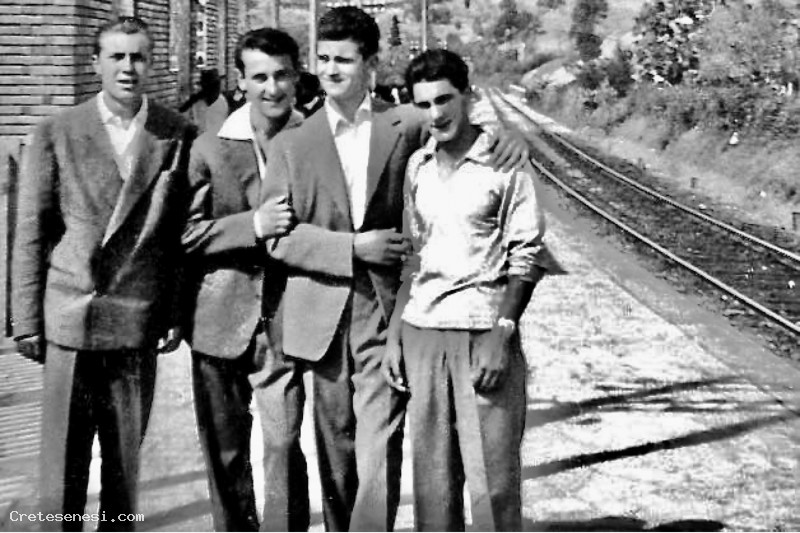 Gruppo di amici in attesa del treno alla fermata di San Giuseppe.
