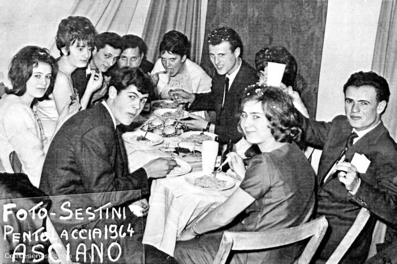 1964 - Gruppo di amici a cena per la Pentolaccia Asciano