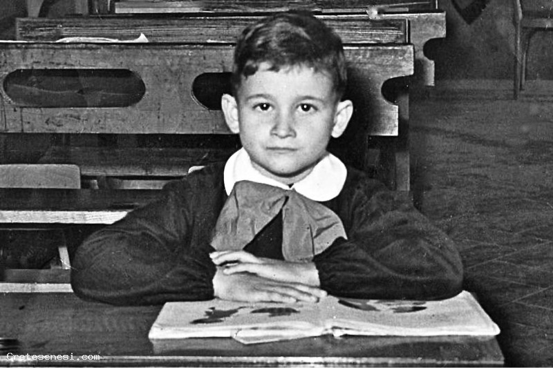 1965? - Scolaro sui vecchi banchi di una scuola rurale Asciano