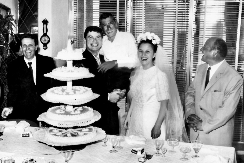 1966, Domenica 28 Agosto – Luciano e Rosanna Biancucci, sposi al pranzo con testimoni e amici Asciano