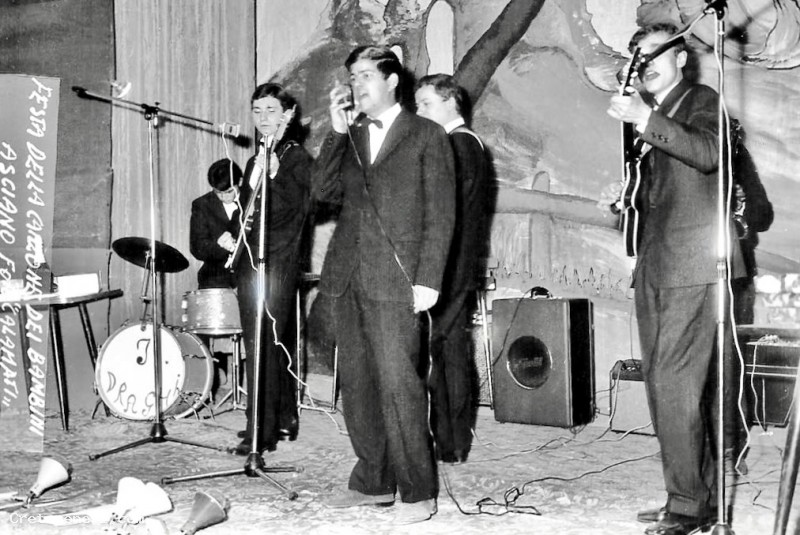 La domanda nasce spontanea vista la scritta leggibile sulla batteria. Dovrebbe trattarsi della fase di transizione fra il complessino originario e la realtà strutturata degli Onduras.