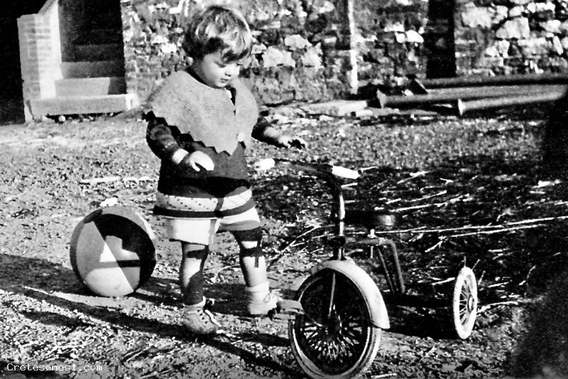 Sandro Moscadelli, gemello di Nella, gioca nel giardino di casa.