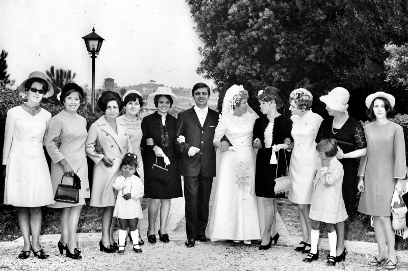 1968, Lunedì 7 Ottobre - Gli sposi con amiche e parenti Asciano