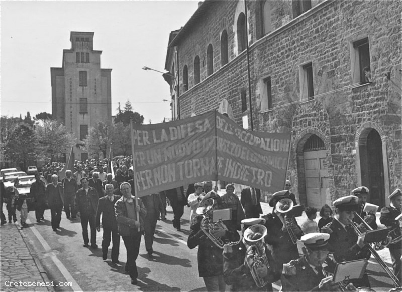 1974 - 1° Maggio, corteo con la banda in testa Asciano