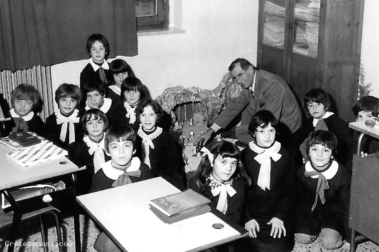Luogo: Asciano, scuola Elementare di via San Francesco, interno aula con presepe
