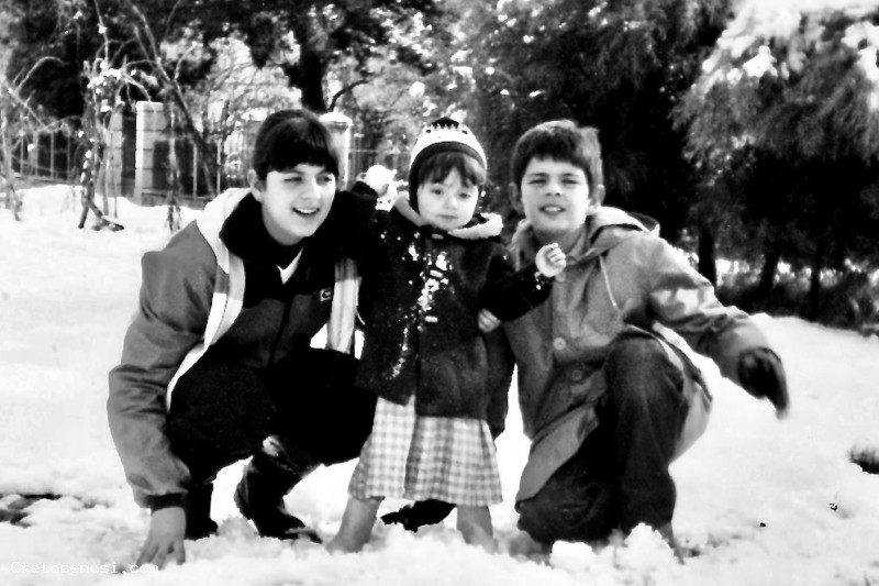 Durante un'abbondante nevicata, caduta a gennaio, i tre fratelli Cresti, figli di Elena e Ilio, sono usciti in strada per giocare con la neve.