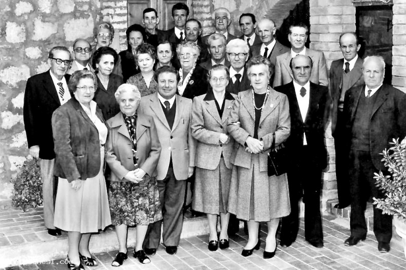 Un gruppo di ascianesi nati nel 1913 e i loro consorti, fatta eccezione per Mauro Fratagnoli figlio di Gesuina Vaselli. La foto dovrebbe essere stata fatta nei pressi del Ristorante di Ottorino alle Sante Marie.