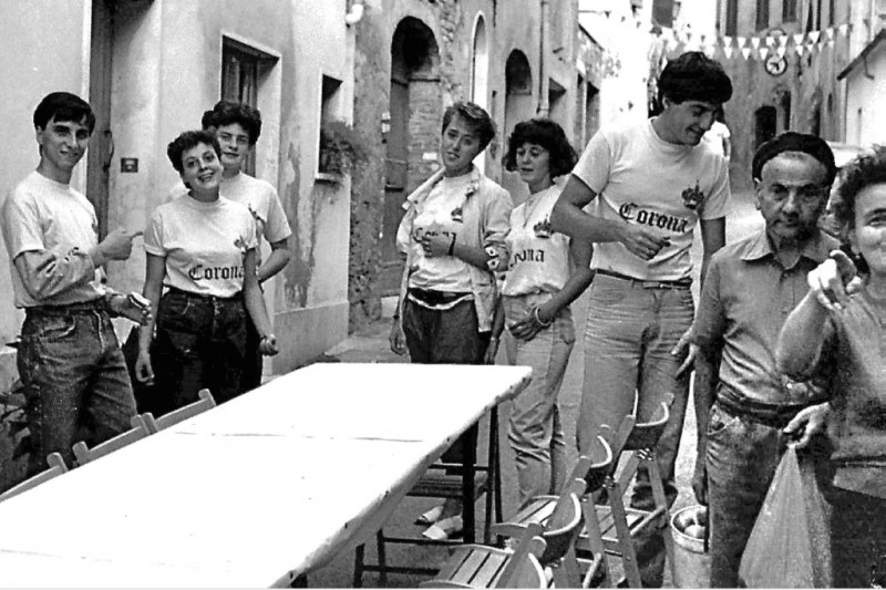 1984 - Si preparano i tavoli per la cena nella contrada della Corona Asciano