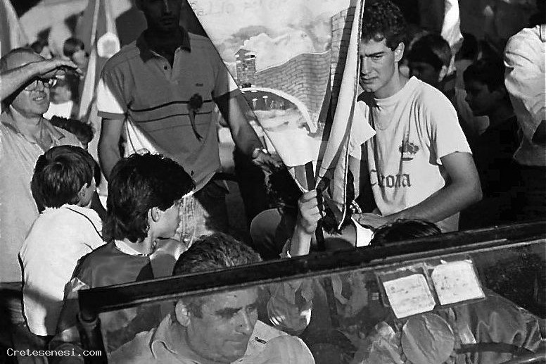 Giancarlo Giannetti e Andrea Moscadelli che sorregge il “cencio” appena conquistato.