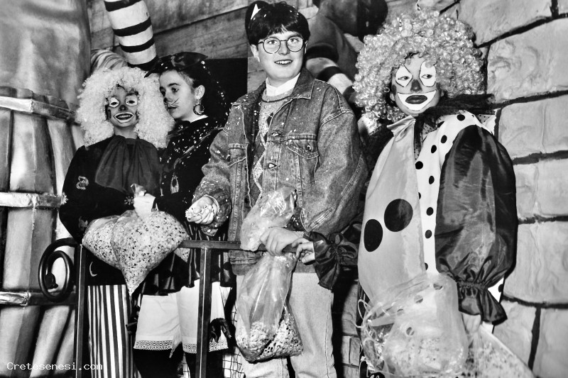 Gruppo di ragazzini di San Quirico d'Orcia al seguito di Mady Martorelli, la prima a destra, figlia di Patrizia Zinelli, Nata e cresciuta nel Cocciaio.