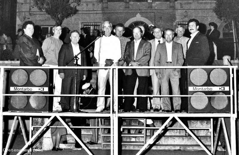 1990, 25° Festa del Donatore Fratres: gli organizzatori sul palco Asciano