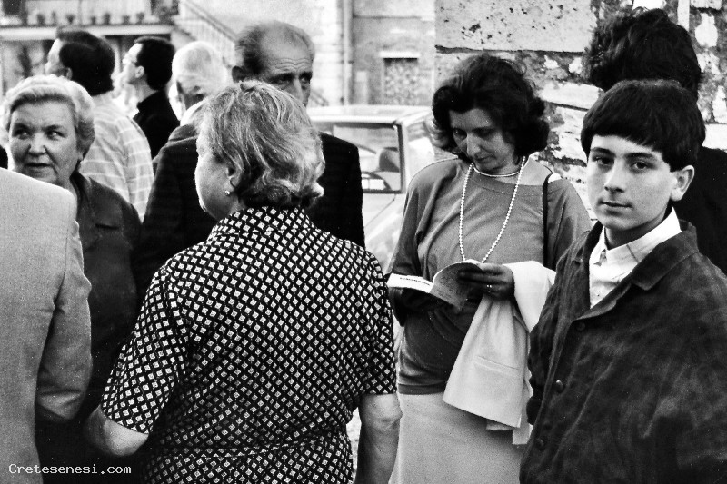Foto di gruppo dei Michelangioli-Coradeschi in occasione di un evento svoltosi nel piazzale della Segeria ad asciano Scalo.