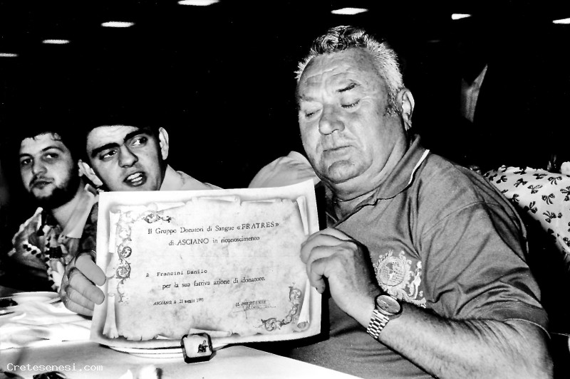 1993, Domenica 23 Maggio - Danilo Francini mostra l'attestato Donatori di Sangue Asciano