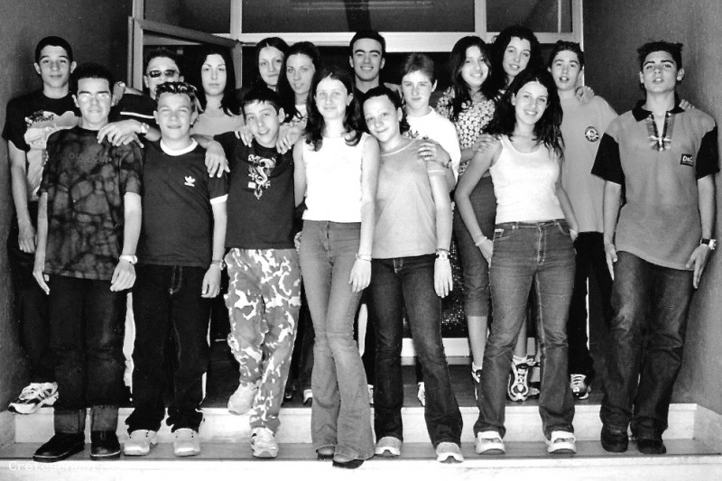 Fra gli studenti fotografati sulle scale d'ingresso della nuova Scuola Media "Sandro Pertini", si riconoscono, partendo da sinistra: