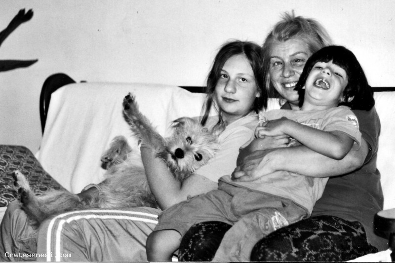 Oriana Ringressi, nata il 13 Aprile 1956, in compagnia della della figlia Camilla, l'immancabile barboncino e, in braccio, un bambino che non conosciamo.