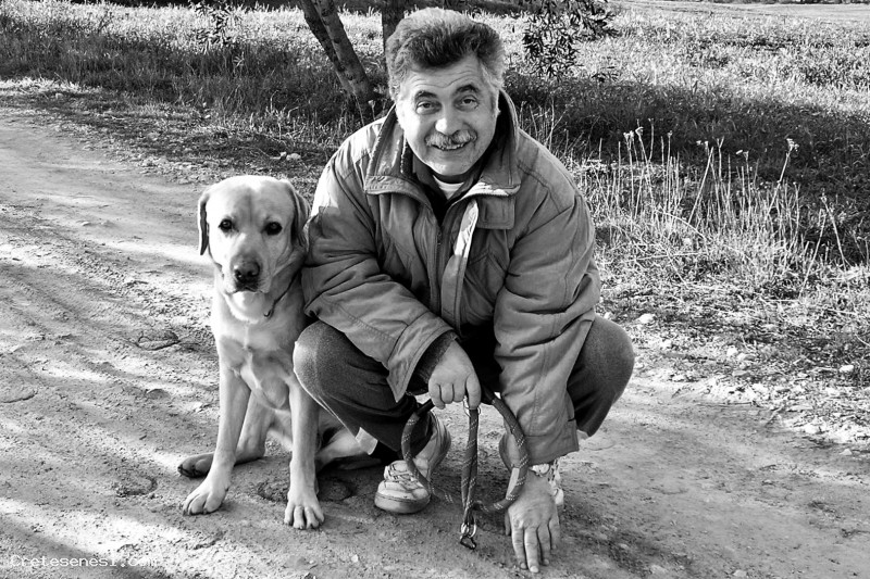 Splendido ritratto di Fabio Brogi con il suo amato cane di allora, mentre si trova in campagna per la passeggiata quotidiana.