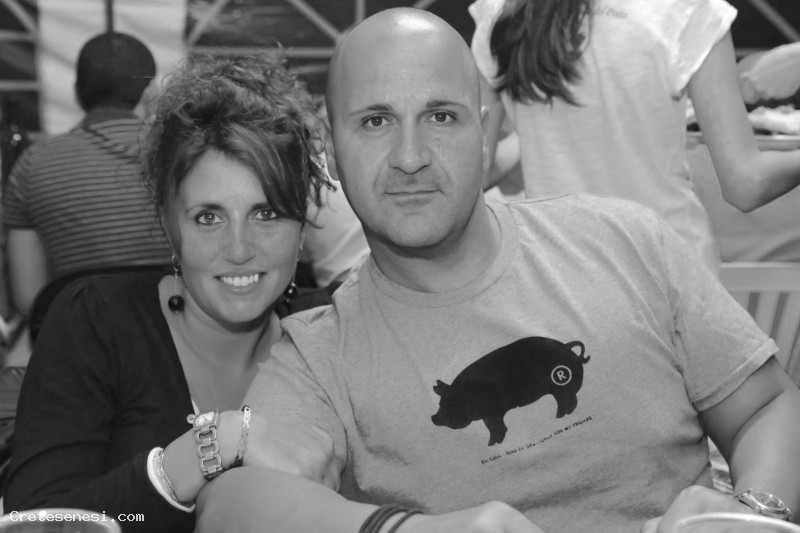 Elisa Perozzi sorpresa ad una cena dell Contrada, accompagnata dalla sua molto personale "guardia del corpo": Emiliano Pompa.