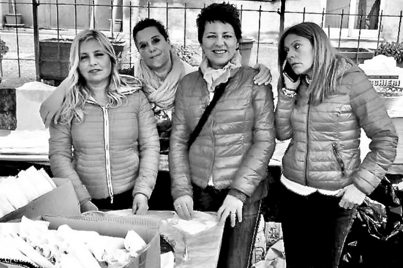 Un gruppo di donne della Proloco di Asciano, in posa poco prima dell'apertura dello Stand di distribuzione Carciofi Fritti alla Festa di Chiusure: