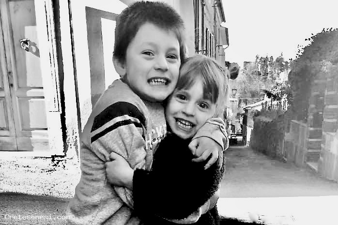 Immagine di un abbraccio grande e forte fra i gemelli di via Santa Maria: