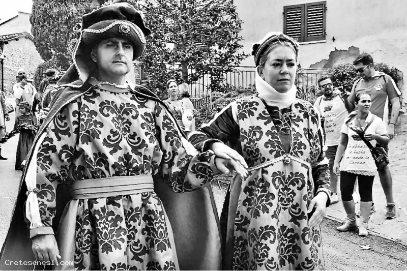 Dopo aver pubblicato alcune foto della coppia al momento del matrimonio, ci piace pubblicarne una piuttosto recente, che riguarda il loro ruolo di comparsa per la contrada della Corona: