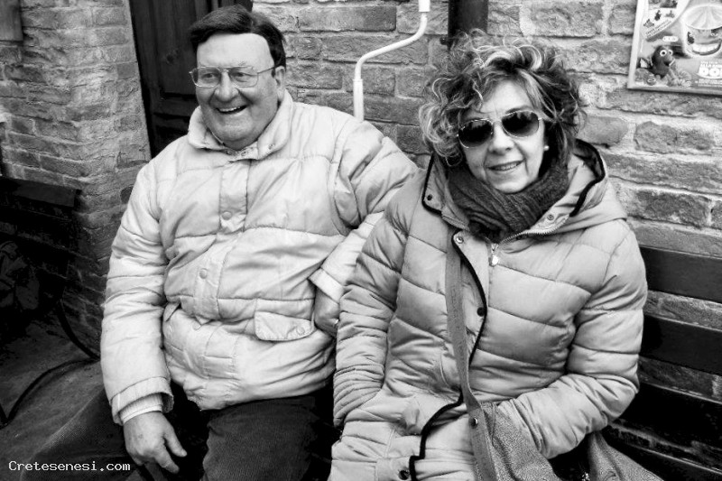Ritratto di due ascianesi partecipanti alla festa, in un momento di riposo sulla panca della piazza del pozzo: