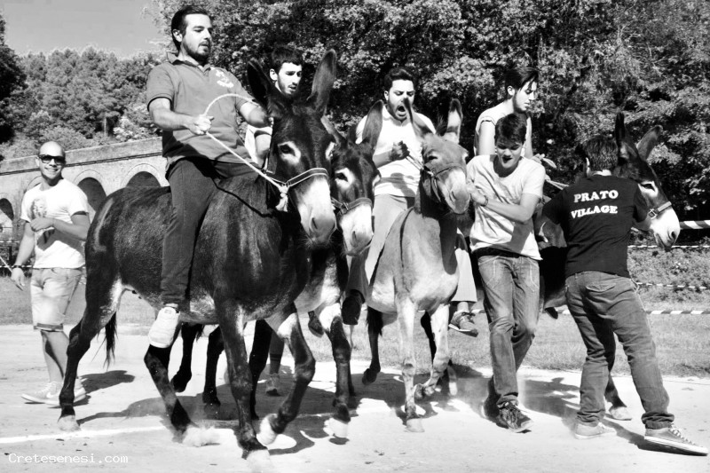 Al Campo della Fiera trasformato in "Prato Village", si svolgono le prove dei ciuchi con fantini diversi da quelli che correranno.