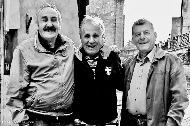 Incontro, nel centro storico di Asciano, fra pensionati.