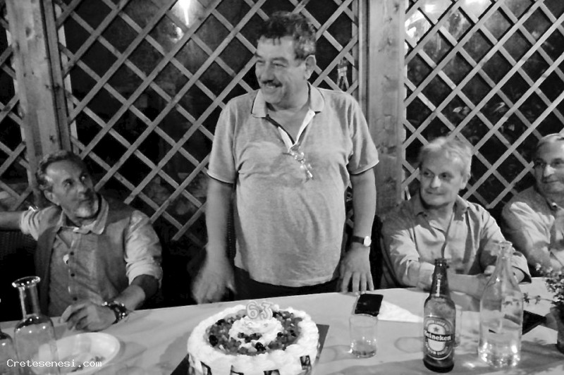 Tiviano Cresti, festeggia, a tavola, il suo 63° compleanno insieme agli amici.