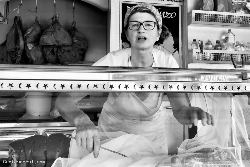 Beatrice Bindi in coppia con il figlio Gabriele, pur abitando a Pienza, sono conosciutissimi ad Asciano. Ogni sabato e durante le feste locali non fanno mai mancare la loro presenza, I loro prodotti a base di carne suina e i formaggi pecorini della Vadorcia sono molto apprezzati.