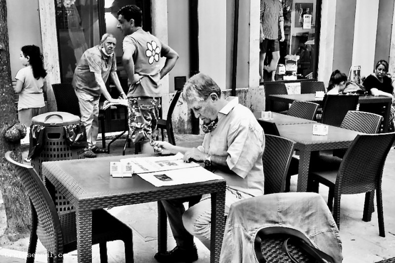 Sul lato destro di piazza Garibaldi, i tavoli del Bar Gaston, la mattina sono prevalentemende in ombra, il posto giusto per fare colazione e leggersi comodamente il giornale.