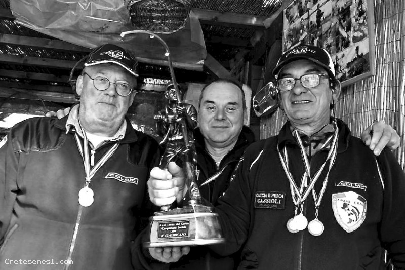 Qui è ritratto assieme a due amici dopo aver ritirato l'ambito primo premio ad una gara di pesca della quale non conosciamo i dettagli.