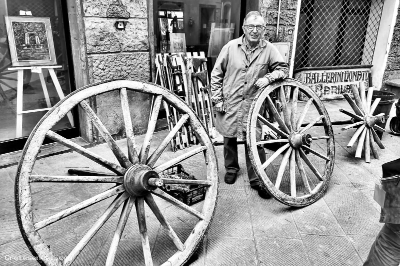 In questo caso, Bruno Donati è chiamato a rappresentare la bottega di un Carraio, del tipo di quella che esisteva accanto a casa sua e gestita, per una vita, da Monaldo Polloni.