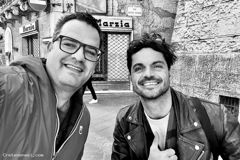 Lorenzo Colli si fotografa in compagnia di Pietro Resta, meglio conosciuto come WikiPedro, produttore di filmati "turistici" su varie località toscane che pubblica sulla sua pagina facebook.
